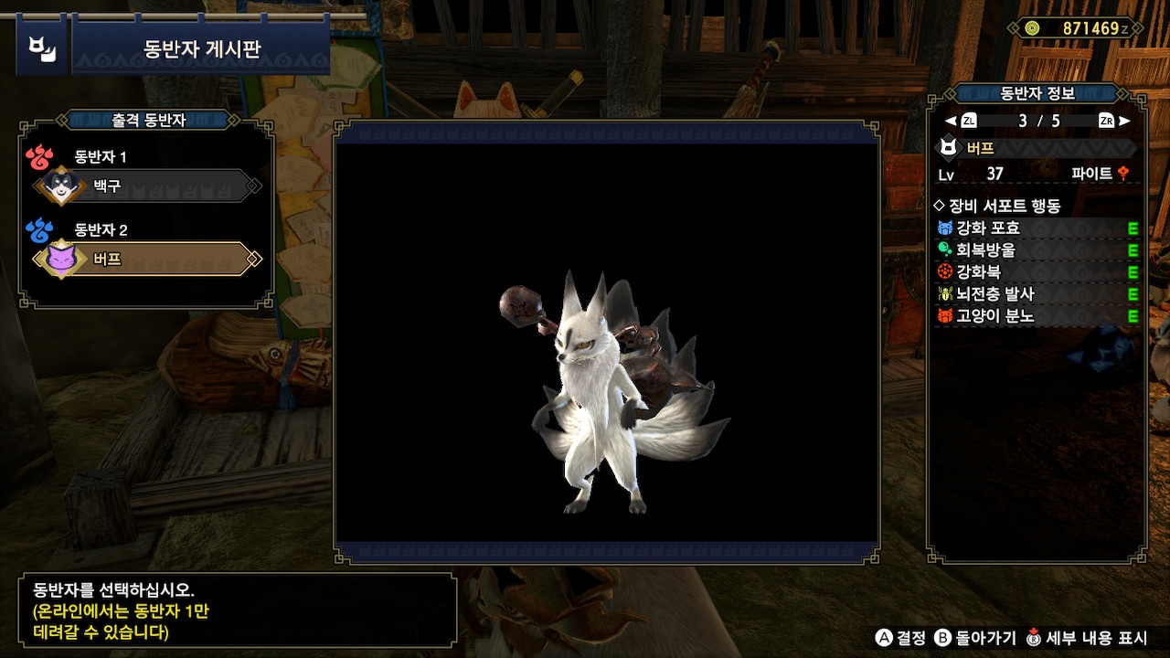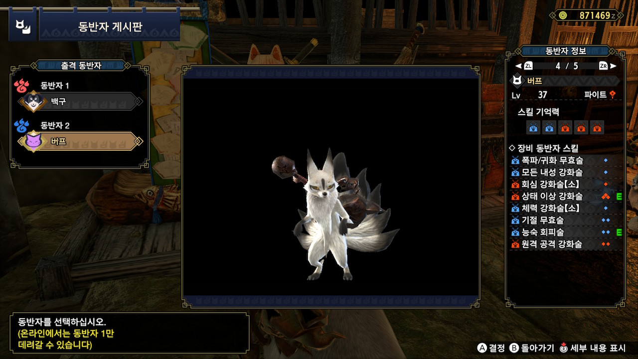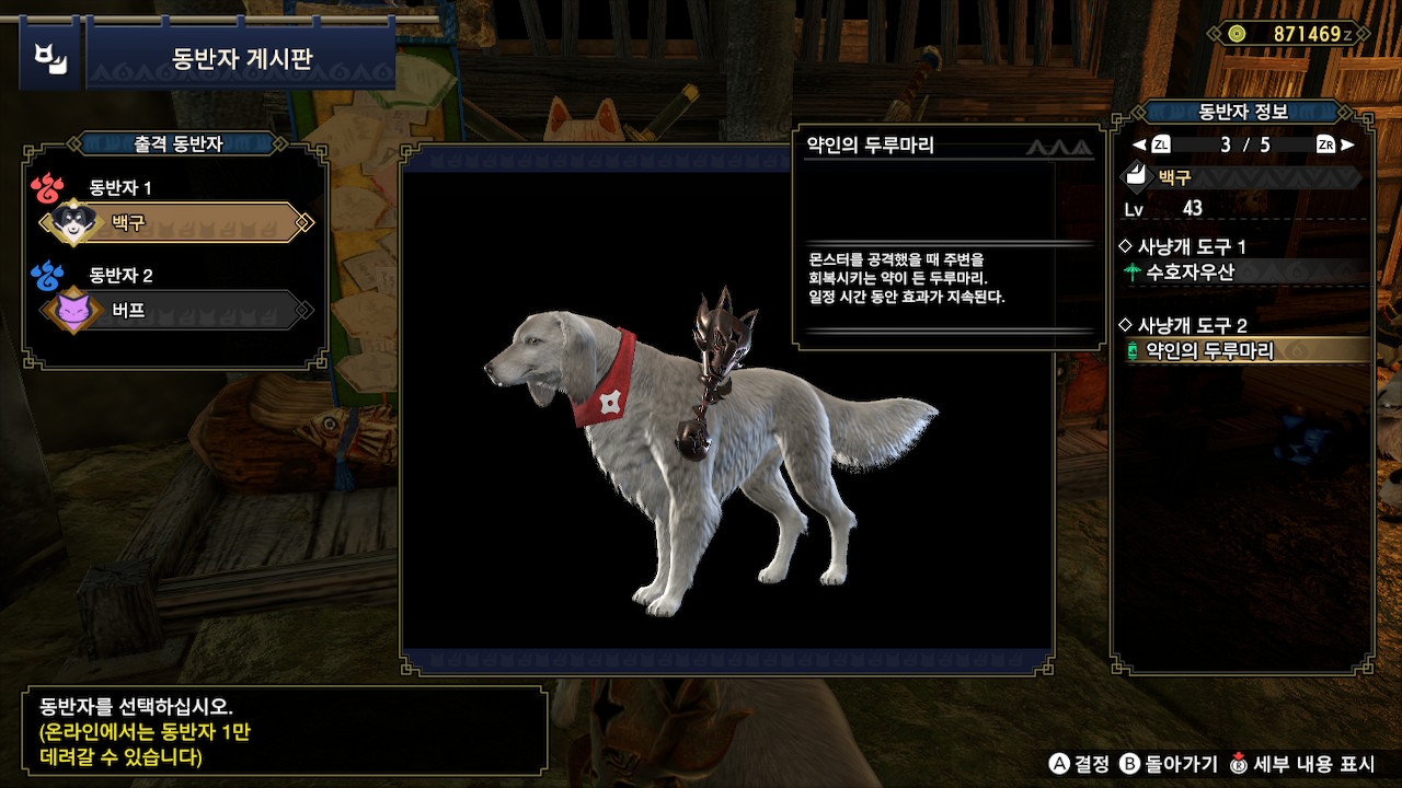 1. 동반자 스킬(장비 서포트 행동, 사냥개 도구)